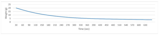 Lewis’ model of drying was used to theoretically calculate the rate of dehydration. The drying constant was iterated to fit the data closest to the experimental results to obtain the drying curve as shown in Figure 2.