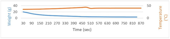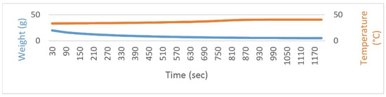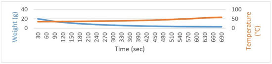 - For Experiment—3, the temperature curve was identical to that obtained with constant temperature drying at 60 °C for the first 210 seconds. The slope of the curve reduced to zero as the temperature change became linear after the first step-reduction. The second step-reduction caused a sudden drop in temperature following which it approached and stagnated at 40 °C.