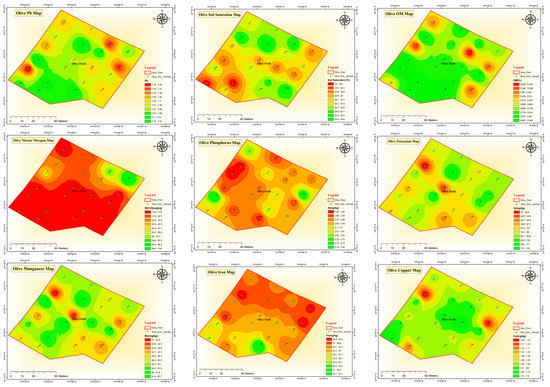 GIS maps showing status of different soil porperties and nutrients in the olive orchard.