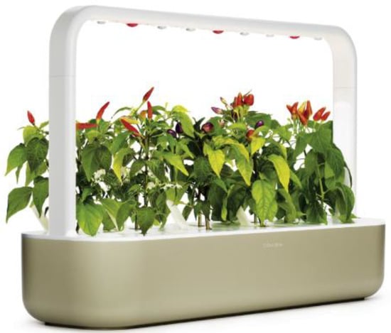 Although developed countries have many resources to fulfill the feeding needs of their community, European countries and private organizations are working on the efficient use of free spaces such as restaurants, metro stations, supermarkets, and in-store farming. Agricool, a company based in France, is working on container vertical farming for strawberry cultivations []. An Estonian company named Click and Grow is working on a novel idea of appliance farms, also called small indoor gardens (Figure 2) [,].