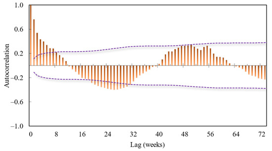 The range for optimization and input definition is considered as [1 lag, 7 lags] based on the ACF results (Figure 1). The range for the ELM hidden neuron size parameter is [1, 34] with 1000 iterations. The ranges for the SVM model are also: C and σ ∈ [0.01, 2000], ε ∈ [0.001, 1]. The TLBO parameters are population = 20 and maximum iteration = 100.