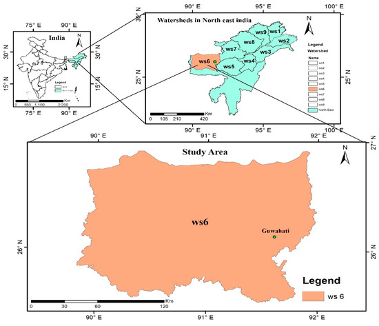 The study area, which includes Kamrup and few neighboring districts in Assam, India is shown in Figure 1. To carry out this study, we used two openly accessible multi-resolution DEM—MERIT DEM and FABDEM, for delineation of watershed using ArcHydro tools and HecGeoHMS package in ArcMap (v 10.5). The morphometric parameters computed from both the DEMs were then computed and compared to check their efficiency for the chosen study area.
