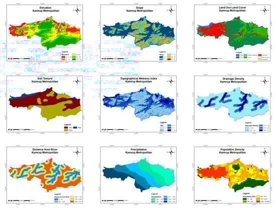 For this aim, the conditioning factors for the hazard were selected [6,7,8,9,10]. In this study, ArcGIS 10.3 (ESRI, USA) is used to perform the analysis of AHP and to produce and display the data layers. All the factors were processed into a raster grid of 30 × 30 m grid cells. Entire conditioning factors were primarily continuous, and some of them were classified within different categories based on expert knowledge and a literature review [11,12,13,14].