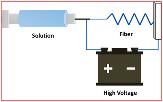 Another process, called “electrostatic spinning”, is a quick way to make nanofibers from a variety of polymeric materials for use in a variety of applications. First, the required material (such as PVDF) is introduced into the spinneret as a solution or melt (normally a syringe with a metallic needle attached). Next, voltage is applied across the conductive collector and spinneret (typically in the range of 10–40 kV) as shown in Figure 3. Once the solution is immediately drawn into microscopic fiber using a pump, it is quickly injected into the syringe and travels through the electric field from the spinneret to the collector Deposition of fibers on a grounded collector is the last step in the electrospinning process [12].