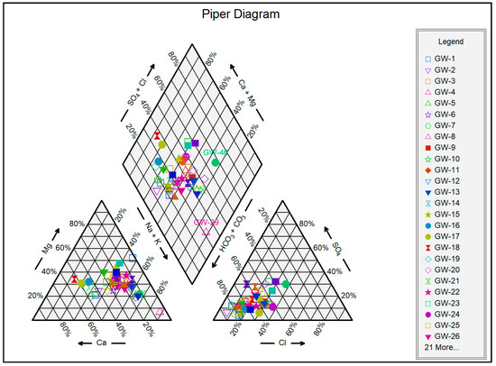 Piper diagram of the collected water samples in the study area.