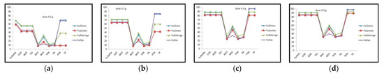 Effect of different doses on efficiency of iron magnetite nanoparticles (agitation speed 200 rpm, time 45 min, and 20 ± 5°C). (a) 0.1, (b) 0.3, (c) 0.4, and (d) 0.5 g.