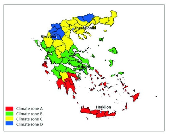 - Technical Guide Technical Chamber of Greece T.O.T.E.E. 20701-1/2017. Regulation of Buildings’ Energy Performance-KENAK. 2023. Available online: https://portal.tee.gr/portal/page/portal/SCIENTIFIC_WORK/GR_ENERGEIAS/kenak/files/TOTEE_20701-1_2017_TEE_1st_Edition.pdf (accessed on 30 April 2023).