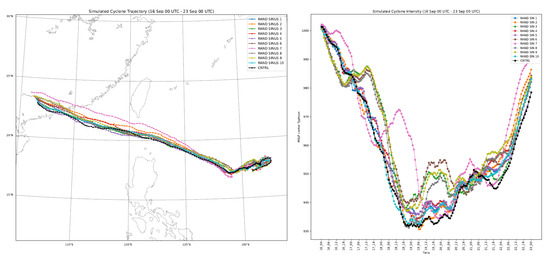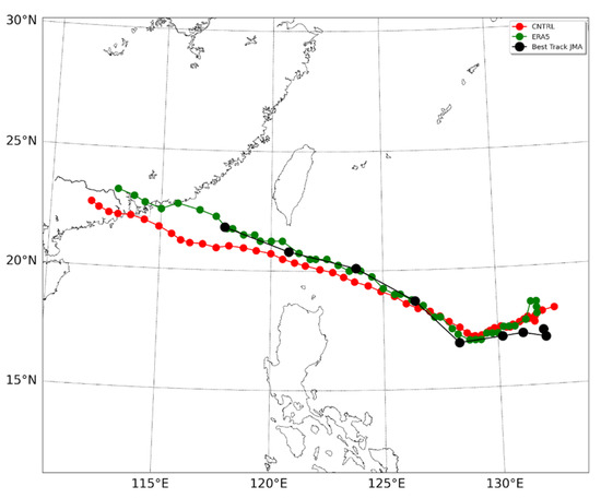 In terms of the trajectory of Usagi, we can observe that the control simulation shows a similar track compared with the ones obtained from the JMA, specially during the initiation and mature stage of Usagi (Figure 3). Although the control trajectory starts to diverge in the dissipation phase of Usagi, we can certainly conclude that the control simulation performs with accuracy enough the typhoon trajectory.