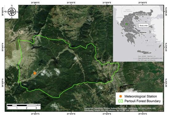 In the study area, a meteorological station has been installed (1180 m a.s.l.) since 1961 and is operated by the UFAMF. The time series are complete, without missing values, and the instruments and observing practices were common and remained consistent throughout the study period (1961–2020). Based on the long-term data recorded at the Pertouli station, the average annual precipitation is 1461.6 mm and the average mean annual air temperature is 9.1 °C.