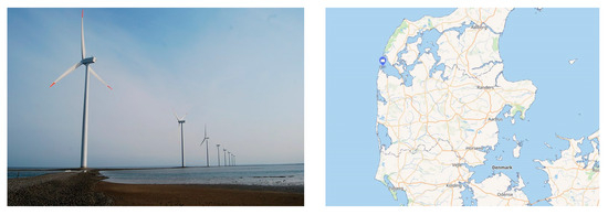 Rønland Offshore Wind Farm is an offshore wind farm in the westernmost part of Limfjorden, Denmark. Commissioned in 2003, it consists of four 2 MW Vestas wind turbines and four 2.3 MW wind turbines from Bonus/Siemens. The exact location of Ronland wind farm is in the westernmost part of Limfjorden, Denmark, and it has the following coordinates on the map: 56°39′46″ N 8°13′10″ E, and the installation location is shown in (Figure 8). Below (Figure 9 and Figure 10) are the average annual temperatures, highest annual temperatures and precipitation found from analyses carried out by the world bank “https://climateknowledgeportal.worldbank.org/country/denmark (accessed on 19 March 2023)” on climate change for Denmark for years 1901–2021. These data concern the Nordjeland region of Denmark where the W/F is located. Denmark has a temperate climate with uniform precipitation throughout the year. The average yearly temperature and precipitation are 8.3 °C and 746 mm, respectively. The mean annual temperature fluctuates annually between 6 °C to 10 °C, with an average of 8.3 °C (1981–2010) and 8.9 °C (2006–2015).