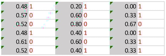 We start with the registration of the predicted deviation values and real deviation values downloaded from the Physicals Science Laboratory, NOAA [9]. Since we built the dataset, we proceeded to the transformation of values—1 for positive values and 0 for negative values. Identical values result in 1, and non-identical values in 0 (Figure 7).