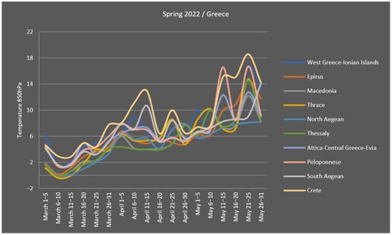 - YouWeather Statistical Model (YSM)—Άνοιξη 2022 (Ελλάδα). Available online: https://www.youweather.com/el-gr/article/o-kairos-tin-anoixi-2022-stin-ellada.html (accessed on 5 May 2023).