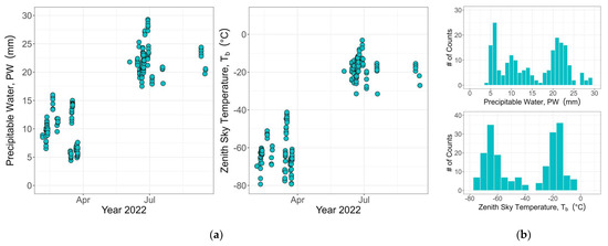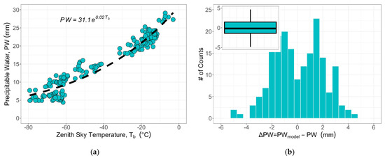 - Kelsey, V.; Riley, S.; Minschwaner, K. Atmospheric precipitable water vapor and its correlation with clear-sky infrared temperature observations. Atmos. Meas. Tech. 2022, 15, 1563–1576. [Google Scholar] [CrossRef]