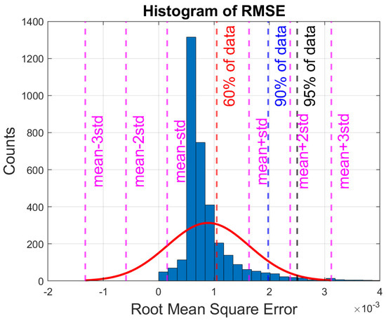 14]. Data with Root Mean Square Errors greater than 2 are excluded to achieve a better performance of the method. The reason for selecting a value of 2 is because it excludes the 10% of the data with the greatest errors, as can be seen in the histogram in
