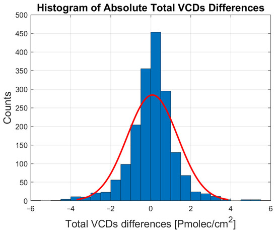 Figure 4, the differences between the absolute total vertical column amounts from the two systems are shown.