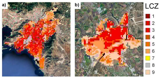 LCZ maps for (a) Athens and (b) Larissa.