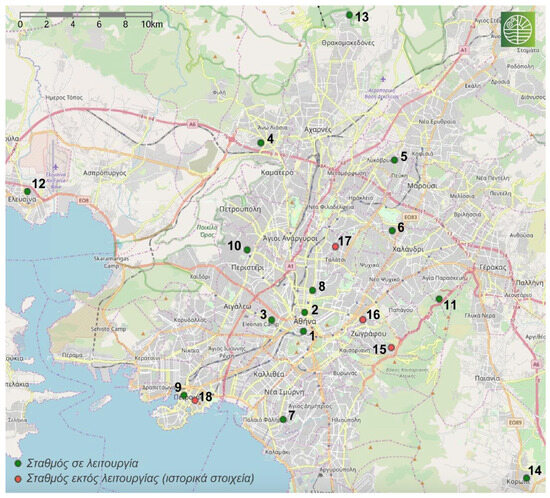 Map of air pollution monitoring stations in the Greater Attica region [8].