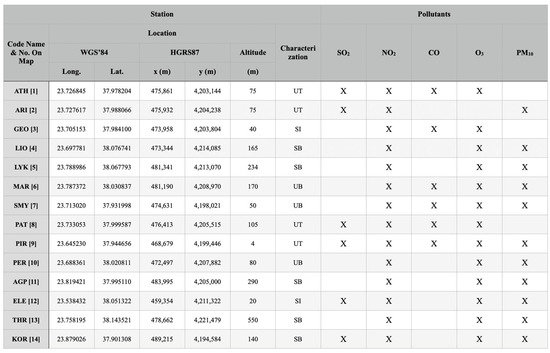 Figure 2 depicts a detailed description of the coordinates, altitude, characterization, and pollutants which were recorded by each monitoring station within the GAA.