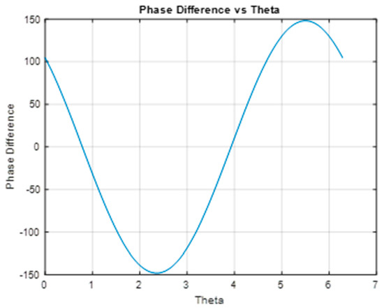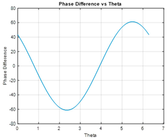 Figure 4 illustrates the phase difference at 10 GHz, which is starts from 600 and slope down to −900 at angle 2.5 degree and then raise up to hit 900 at angle 5.5 degree.