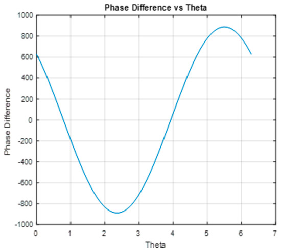 Figure 3 shows the phase difference at 2.4 GHz, which is starts from 100 and slope down to −150 at angle 2.5 degree and then raise up to hit 150 at angle 5.5 degree.