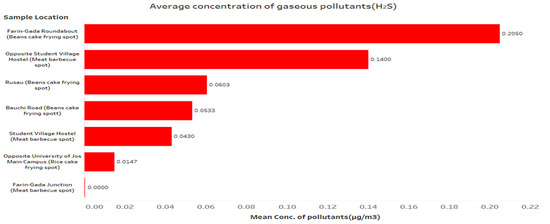 For the concentration of H2S in Figure 3, Farin-Gada Roundabout records the worst case emission scenario, while Farin-Gada junction showed the least emission scenario.