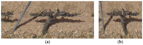 It is worth highlighting the complexity of the treatment of the shadows, due to which it was necessary to take into account whether the shadow was in front or behind the strain of interest for the application of the GRVI index and the map algebra operation. Similarly, the application of several morphological filters and the contour detection of the OpenCV library has made it possible to obtain an optimal segmentation of the strains, differentiating in each homography as to which pixels belong to the arm and trunk of the strain and which do not.