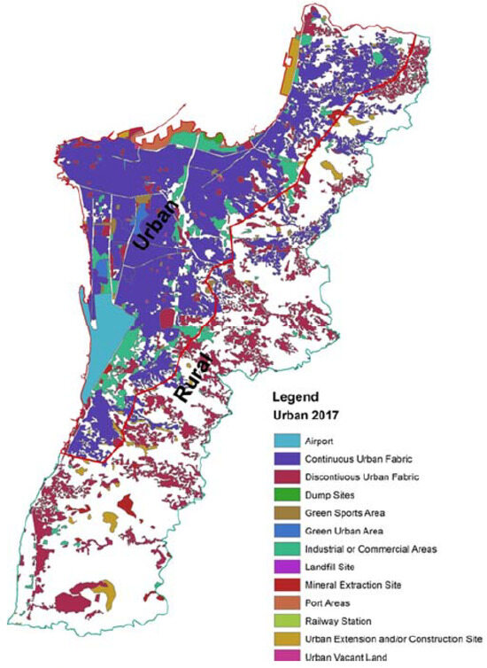 Urban and rural borders of Beirut in GBA.