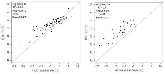 - Wang, Y.; Wang, M.; Zhao, J. A Comparison of MODIS LST Retrievals with in Situ Observations from AWS over the Lambert Glacier Basin, East Antarctica. Int. J. Geosci. 2013, 4, 611–617. [Google Scholar] [CrossRef]