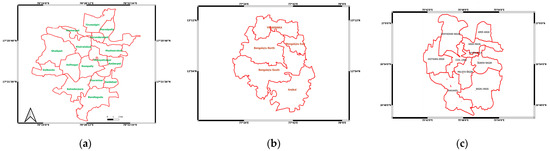 Cities with sub-administrative boundaries. (a) Hyderabad (b) Banglore (c) Jaipur.