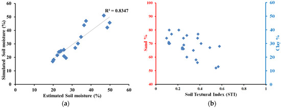 Validation and analysis of (a) soil moisture with field-observed values; (b) proposed soil textural index.