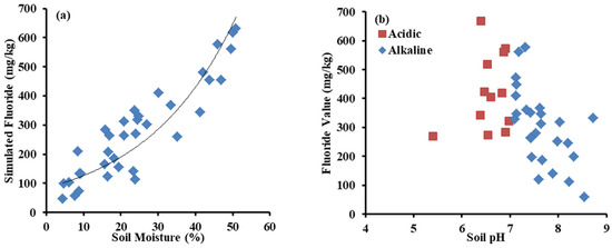 Response of the estimated fluoride to (a) soil moisture and (b) soil pH.