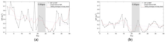 Figure of the daily SIP from 1 September to 10 October 2019 in the (a) CDP and (b) MBP.