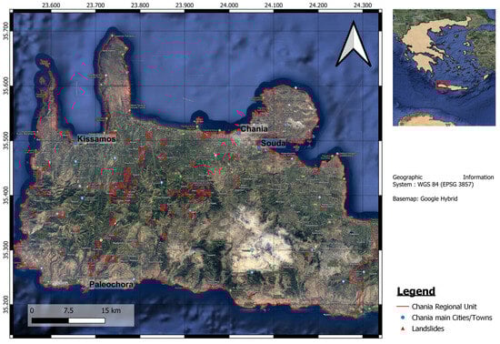 The object of this study is to develop a framework that integrates a DInSAR method with existing methodologies and open access data to establish a comprehensive landslides inventory. The proposed framework was applied in the Chania regional unit in western Crete, Greece, which was selected as the case study area.