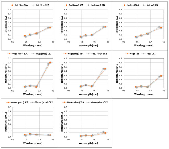 | DE2/S2A | Veg 2 (crop) (313459, 8479785) | Veg 3 (forest) (313459, 8479785) | Water (pond) (313459, 8479785) | Water (river) (313459, 8479785) | ||||
