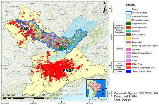Study area—Atibaia watershed. RMSP: São Paulo Metropolitan Region; RMC: Campinas Metropolitan Region.