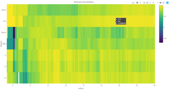 Once all TLS metrics and variables have been assessed according to how they are correlated with the variables of interest, the next step is to evaluate them with the optimize function. This function generates interactive heatmaps (one per plot design) in which the behaviour of those metrics showing the best correlations across continuous plot size increments can be observed (Figure 4). The color palette gives warm and cold colours to highly positive and negative correlations, respectively.