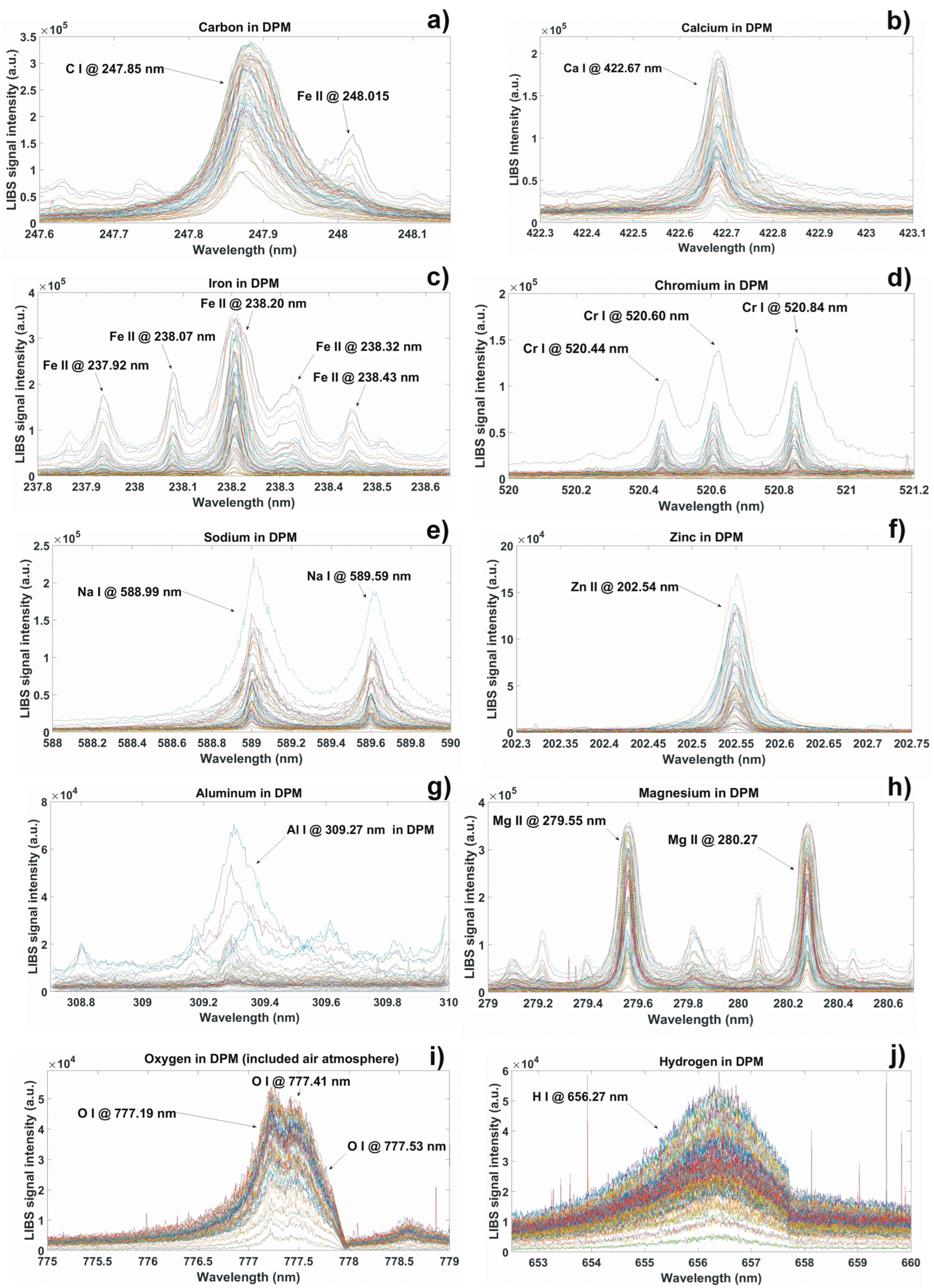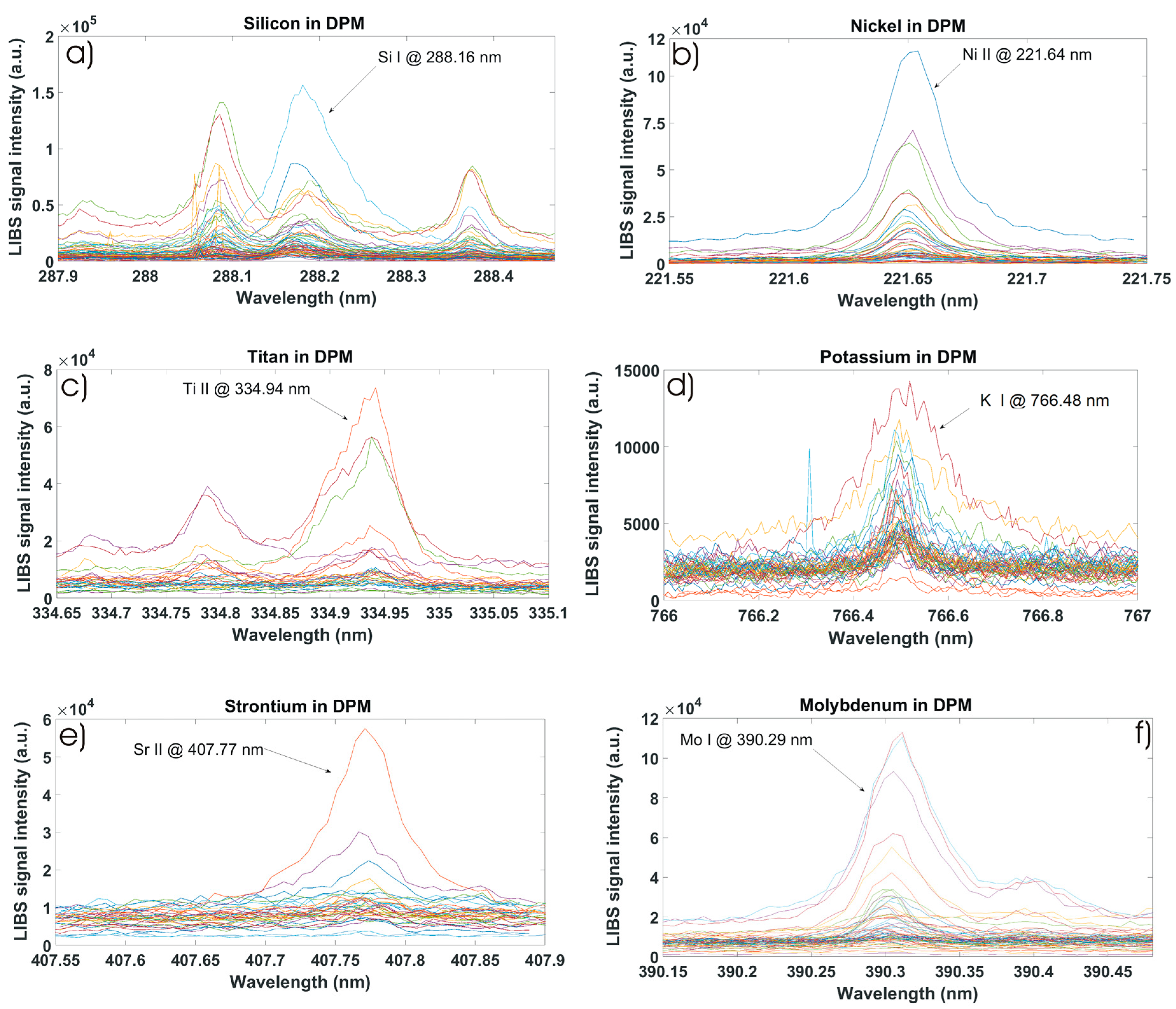 - Viskup, R.; Wolf, C.; Baumgartner, W. Qualitative Characterisation of Trace Elements in Diesel Particulate Matter from In-Use Diesel Engine Passenger Vehicles by Means of Laser-Induced Breakdown Spectroscopy. In Environmental Emissions; ed. Richard Viskup; IntechOpen: London, UK, 2021. [Google Scholar] [CrossRef]