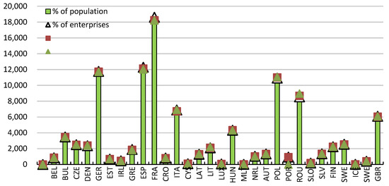 By way of example, we have highlighted in Figure 5 countries considering the annual inventory of pollution in the area covered by its member states. Regarding pollutants to non-methane volatile organic compounds, the leaders are Germany, 1,196,457; Italy, 940,101; Poland, 708,249; France, 662,961; Spain, 572,369; Romania, 241,860; another example is particulates < 10 µm pollutant: Gr 1,202,279; Pol 761,712; Fr 749,007; Sp 698,483; Italy 669,157; Romania having 225,378.