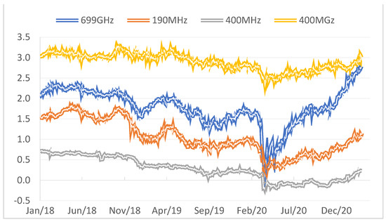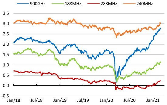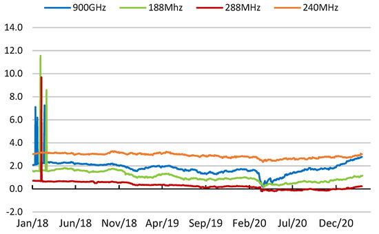 Therefore, the integration of digital systems and agricultural ecosystems can be seen as a lever for counting electromagnetic waves from mobile data sources; see the data presented in Figure 2.