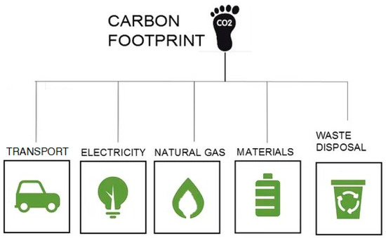 The general methodology for estimating the carbon footprint for the operations of industrial production companies is based on the ISO 14067:2013 standard [16]. The CF calculation methodology considered in this standard is based on the calculation of CF over the entire life cycle of a company and divides the necessary inventory data into two general categories [16,18]: