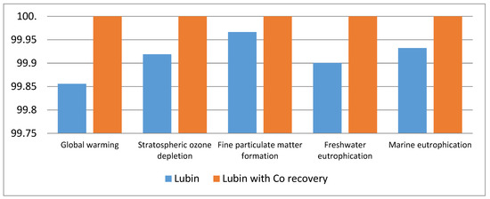 The impact of the Lubin exploitation with cobalt recovery, whose inventory estimation is given in Table S1, is compared with the traditional exploitation of the mine in Figure 3. As evidenced by the scale of the ordinates axis, the differences are almost negligible.