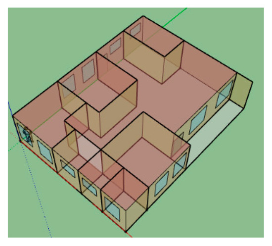 The building used as a model for the energy simulation is located inside the Jigme Namgyel Engineering college campus under the Dewathang municipality. It is a single-story residential building with the floor area of 130 m2 and floor-to-roof height of 3.5 m. The indoor layout is as follows: three bed rooms, one living room, one kitchen, one study room and two toilets, as shown in the Figure 1 and Figure 2.