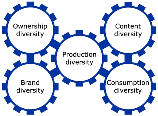 - Loecherbach, Felicia, Judith Moeller, Damian Trilling, and Wouter van Atteveldt. 2020. The Unified Framework of Media Diversity: A Systematic Literature Review. Digital Journalism 8: 605–42. [Google Scholar] [CrossRef]
