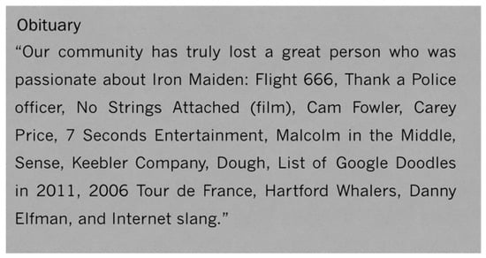 This perspective was also reflected in a student’s critical intervention, which imagined what their obituary would look like if it were to be constructed using the information that Facebook has found most important about them (