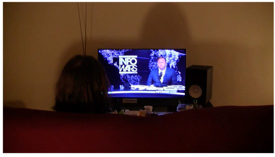 Figure 5, allowed the user to explore the room using a spotlight and when they stumbled upon one of the ad topic associated items, the code would generate some type of interaction. Examples include a picture of Karl Marx that begins playing the Soviet Union national anthem, and a song by the Beach Boys linked to the verbalization of the word “safari”. These could only be turned off by vocally telling the computer to “shut up”. Finally, one could find the student himself laying on the ground, with a copy of The Communist Manifesto resting over his face to explore the way that Facebook had subjectivated him as a radical left-wing activist.