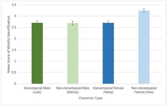 Mean scores of wishful identification with each type of character. Note. Error bars represent the standard error for mean scores.