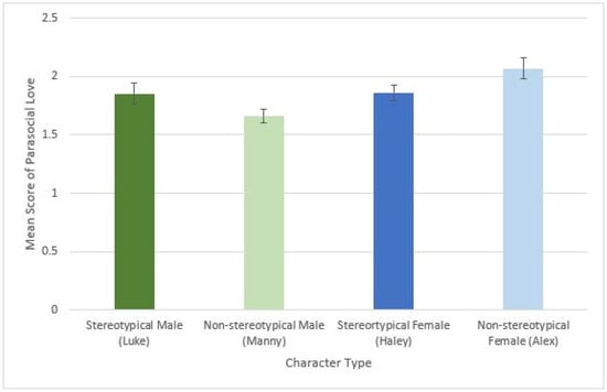 Parasocial love is higher for (a) stereotypical characters and (b) male characters.