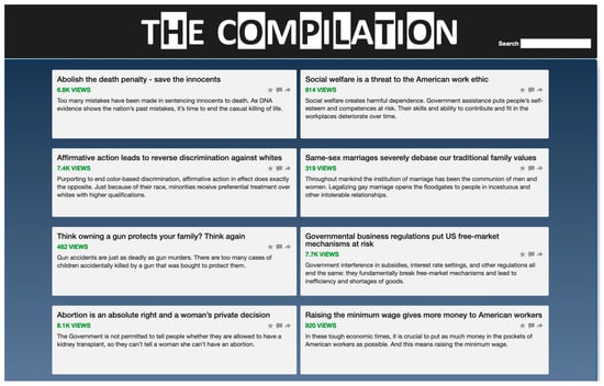 - Knobloch-Westerwick, Silvia, Nikhil Sharma, Derek L. Hansen, and Scott Alter. 2005. Impact of popularity indications on readers’ selective exposure to online news. Journal of Broadcasting & Electronic Media 49: 296–313. [Google Scholar] [CrossRef]