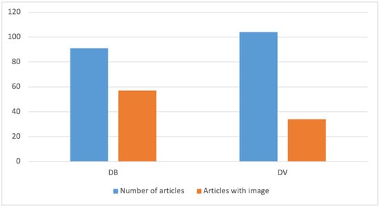 Comparison between Diário As Beiras (DB) and Diário de Viseu (DV) regarding number of articles and images.