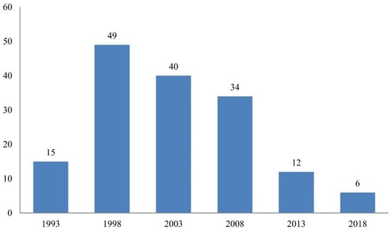 In 1993, the presence of architecture was insignificant in the supplement. There were solely 15 pages devoted to the subject throughout the year, as shown in Figure 13. However, in 1998, architecture was present in almost every supplement and reached the maximum number of annual pages dedicated to the discipline: 49. Unfortunately, the number of pages dramatically fell since then. The most significant decrease was from 2008 to 2013, when the supplement went from 34 to 12 annual pages on architecture. Further, 2018 was even worse: only six pages dealt with the topic of architecture.